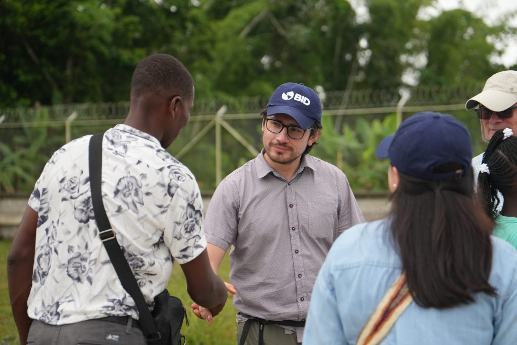 La delegación del BID, encabezada por Pedro Martel, jefe de la División de Medio Ambiente y Desarrollo Rural del BID, y Pablo Angelelli, jefe de Operaciones del BID en Colombia, conoció de primera mano las instalaciones que incluyen una sala de fermentación, área de secado, vivero inteligente, planta de energía solar y un tanque de almacenamiento de aguas lluvias.